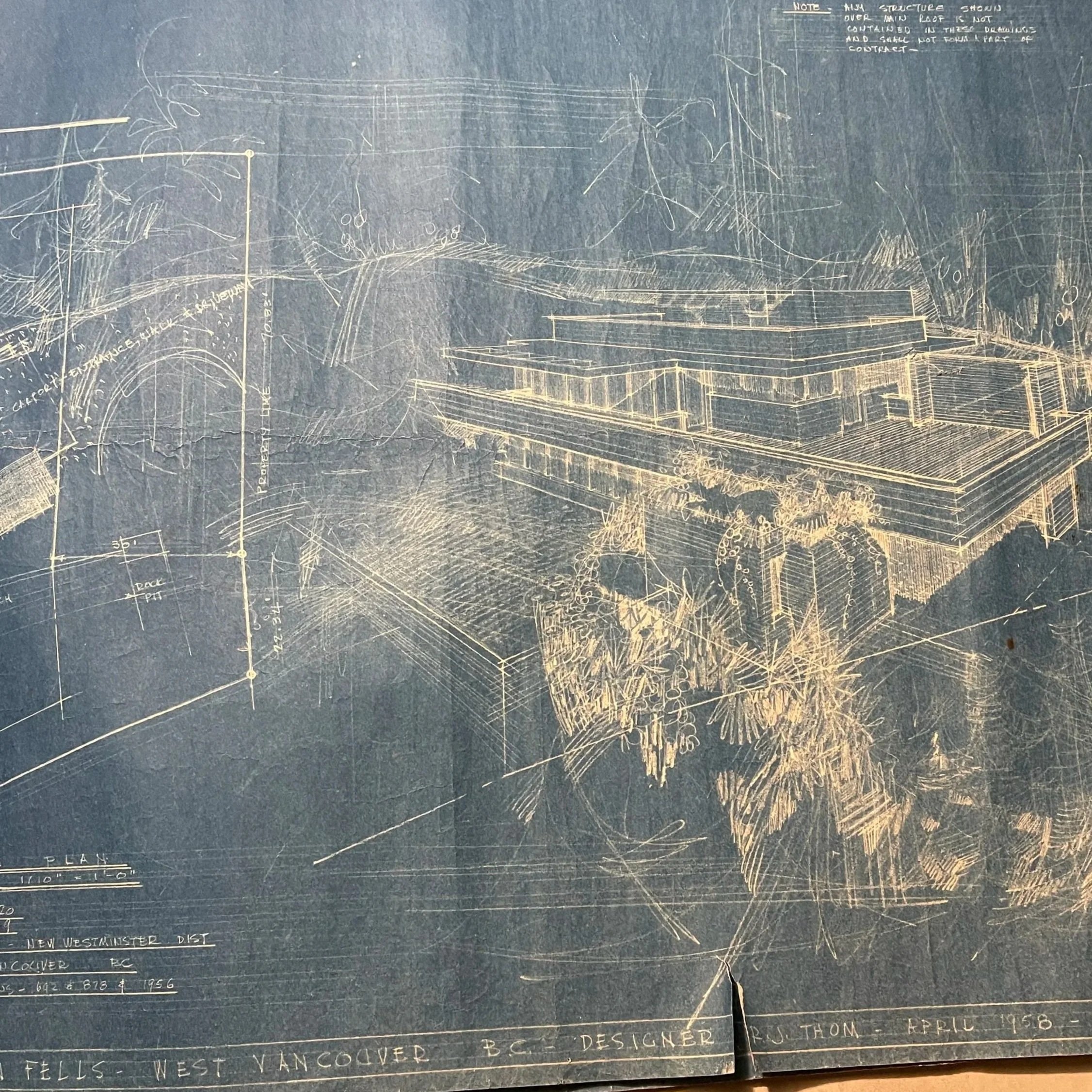Designed in 1958 by Ron Thom, Fells House is a composed study in West Coast modernism. The residence is organized as horizontal wood volumes anchored by vertical masonry elements, with waist-height strip glazing pinwheeling around these solid masses.